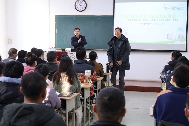 王建华结合自身40多年的飞机制造经验,从中国飞机制造的水平、飞机制造、飞机装配技术等多方面做了详细讲解,使同学们对飞机制造的全过程有了全面的了解,同时也了解了中国飞机制造的现状。