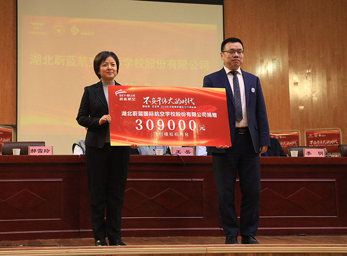 湖北蔚蓝国际航空学校股份有限公司向我院捐赠了价值30.9万元的两台飞行模拟机。