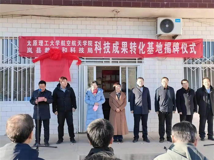 12月27日,yl6809永利集团与吕梁市岚县教育和科技局的“航空文化科普基地”、“科技成果转化基地”揭牌仪式分别在岚县中学和岚县科达农机制造有限公司隆重举行。岚县政府副县长程智芳、岚县教育科技局局长魏海明、岚县教育科技局副局长程志鸿、岚县县委组织部副部长苏呈祥、岚县顺会乡党委书记李锐生、岚县科达农机制造有限公司董事长梁爱林、yl6809永利集团党委副书记(主持工作)郝雪玲、副院长(主持工作)李文辉和部分教师代表出席揭牌仪式。