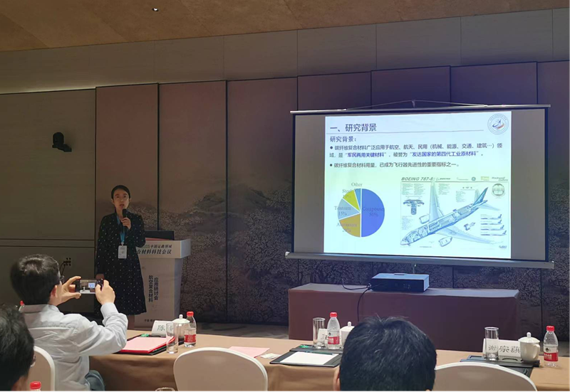 会议根据航空、航天、轨交、汽车、船舶及海洋工程等多领域研究方向,设置了对应的分会场进行研讨交流。我院青年教师苏亚男受邀在航空复合材料应用研讨会作了题为“碳纤维复合材料界面优化设计”的主旨报告,报告分别从纳米填料的结构-功能改性、无机/有机插层改性、高相容性界面过渡层设计、界面化学反应设计等方面介绍了对碳纤维复合材料的界面性能设计。