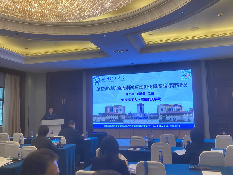 本次会议期间,李志强教授在分会场作了题为《航空发动机全周期试车虚拟仿真实验课程建设》的报告,为与会人员介绍了我院山西省虚拟仿真一流课程的建设经验。刘鹏副教授向大会提交了《飞设专业“纵横贯通”实践教学改革》的教改论文,介绍了我院实践课程改革的相关思路。