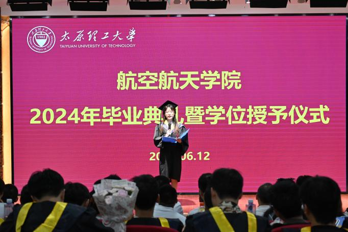 优秀毕业生飞设2001班崔佳茹作为毕业生代表发言。她回顾了在校期间的成长与收获,表达了对母校和学院深深的眷恋和对老师们诚挚的感谢。她号召全体毕业生再接再厉,以实际行动书写航空航天人的辉煌篇章,为人类的航空航天事业贡献青春力量。