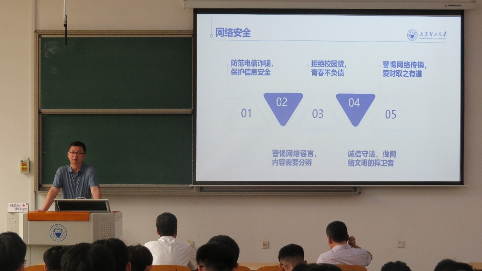 闫晓峰从国家与网络安全、人身与财产安全、心理与社交安全、生活与其他安全四个方面进行了安全教育,讲述了常见的安全隐患与可能出现的安全问题,希望同学们全面发展,出现问题及时与老师沟通,做自己安全的第一责任人。随后,全体师生集体观看《实验室安全教育》视频。