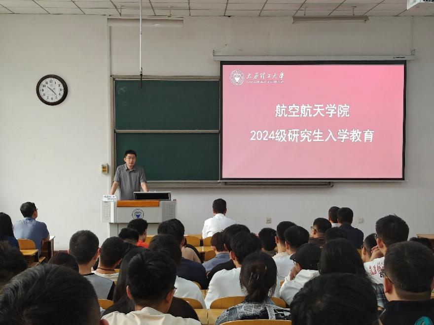 司靓代表学院向2024级研究生的到来表示热烈的欢迎和祝贺,他介绍了学院的学科建设、科研平台建设等情况,他以“期待与共振”为题,结合自己的求学经历鼓励同学们在新的学习征程上奋力拼搏,对航空学科的历史、发展前景等进行了详细的介绍。他希望大家应当心怀“国之大者”,强化全方位的创新意识,注重提升科研思维能力,认真努力地完成学业,早日有所成。
