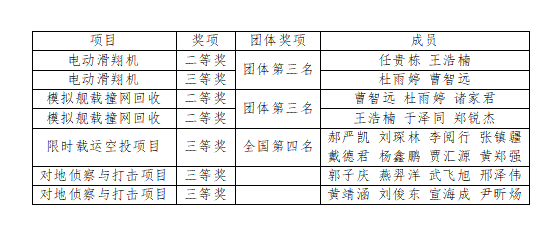 yl6809永利集团代表队荣获电动滑翔机项目二等奖、三等奖各一项,团体全国第三名(季军);模拟舰载撞网回收项目二等奖两项,团体全国第三名(季军);限时载运空投项目三等奖(全国第四名);对地侦察与打击项目三等奖两项;优秀团队奖及“十年磨一剑”特别贡献奖等11个奖项。