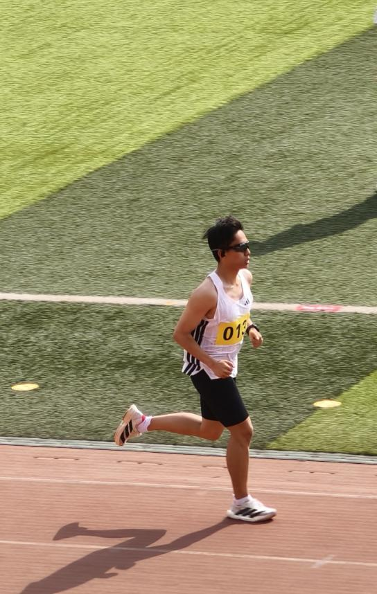 在长跑赛场上,飞设2302班蒋珺崴同学奋勇向前,凭借顽强的毅力和持久的耐力,取得了甲组男子5000米第七名的优异成绩。