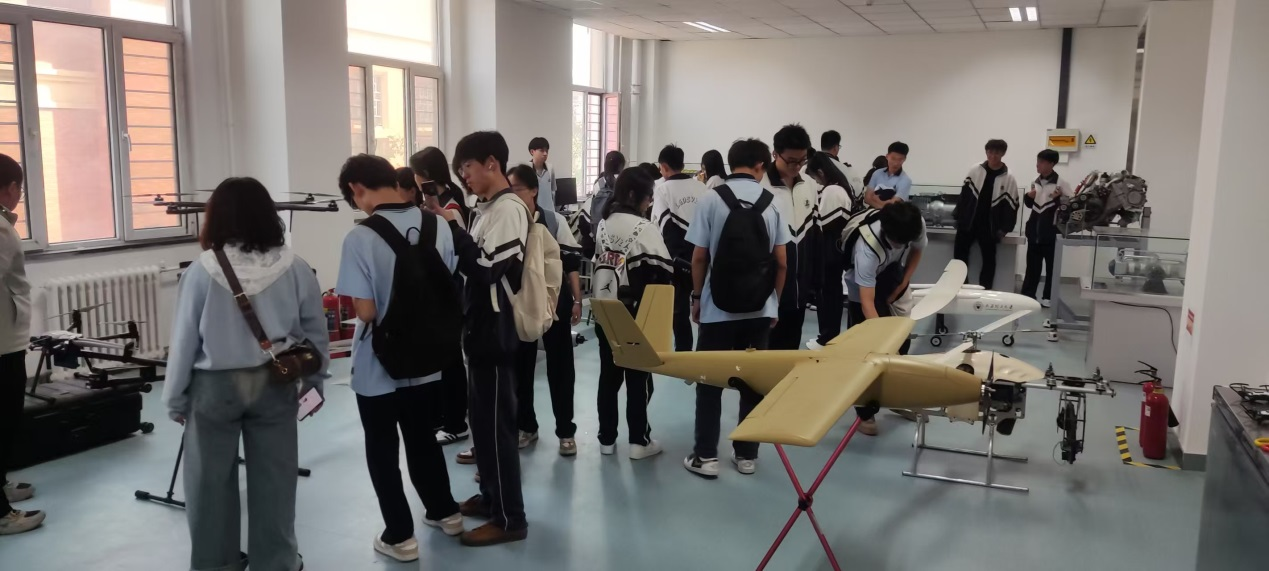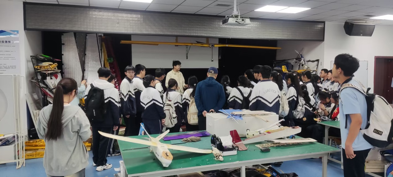 参观过程中进行了互动交流,中学生们踊跃提问,对航空航天领域的各种问题充满了好奇。实训中心的老师和相关专业大学生志愿者耐心讲解解答,现场气氛热烈。通过交流互动,不仅解答了同学们心中的疑惑,更激发了他们对航空航天知识的浓厚兴趣和探索欲望。