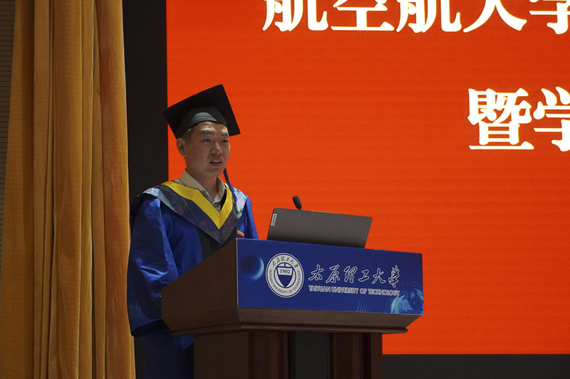 教师代表王根伟为毕业生送上了真挚的祝福和殷切的嘱托。希望同学们在今后的人生道路上,坚守初心,保持学习的热情,不断提升自己,将个人理想融入国家航空航天事业发展洪流;勇于挑战前沿,在关键核心技术领域铸就大国重器。