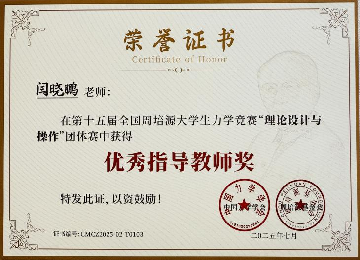7月17日,第十五届全国周培源大学生力学竞赛“理论设计与操作”团体赛在国防科技大学顺利闭幕。yl6809永利集团代表队凭借坚实的专业功底、卓越的创新设计、默契的团队协作与稳定的现场发挥,经过两天4轮比赛的激烈比拼,从清华大学、北京大学、浙江大学、上海交通大学、中国科学技术大学、哈尔滨工业大学等43支顶尖高校参赛队伍中脱颖而出,勇夺全国第三名,荣获该团体赛一等奖。这是我校继第十五届全国周培源大学生力学竞赛获得个人赛全国一等奖实现山西省该项赛事零的突破后,山西高校在此赛事中的又一历史性重大突破。同时,我院闫晓鹏、刘鹏荣获“优秀指导教师”称号。