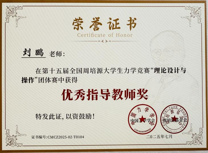 为提升学生创新实践能力与学科竞赛竞争力,学校于2024年启动创新实战能力提升行动。作为该行动的重要实践载体,在创新创业学院的大力支持下,我院于2024年12月成功举办首届“周培源大学生力学竞赛集训营”,极大激发了学子们投身力学研究与竞赛的热情。学院高度重视本届力学竞赛备赛工作,于6月初启动备赛工作,从个人赛优胜者中遴选出飞设2203班郝严凯、张镇疆与飞设2301班何轩毅三位同学组队,并组建由闫晓鹏、刘鹏两位老师为核心的指导团队。备赛期间,指导团队制定科学训练计划,通过理论解析、实操演练、模拟竞赛等多元化方式,系统提升选手的综合能力。参赛学生克服高温挑战,全身心投入集训,在短时间内实现竞技水平的快速提升。