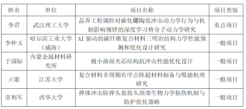 2025年5月,材料强度与结构冲击山西省重点实验室(以下简称实验室)组织开展了2025年开放课题的申报工作,经课题收集、资格审查、专家评审等严格程序,最终确定对5项课题(1项重点项目,4项一般项目)进行立项资助,现予以公示。公示时间为2025年9月1日-2025年9月7日,公示期间如有异议,请以书面方式反映至实验室。以个人名义反映情况的,请署真实姓名并注明单位和联系方式;以单位名义反映情况的请加盖单位公章。