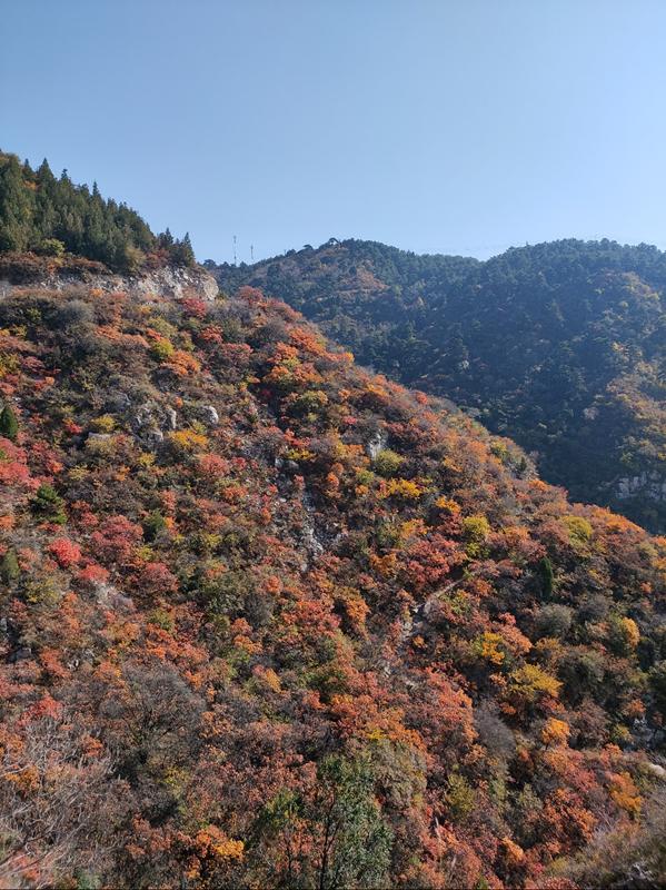 驱车到达崛围山下时,瞬间就被眼前的景象所震撼。漫山遍野的红叶,如火焰般燃烧,仿佛为整个山脉披上了一件华丽的红色外衣。在阳光的照耀下,红叶闪烁着迷人的光芒,瞬间感受秋天的美妙与魔力,让人陶醉其中。