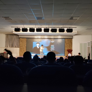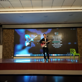 燥热的天气无法阻挡同学们的热情,时间未到同学们就迫不及待地赶到现场。随着主持人王啸和张津乐振奋人心的开场白,现场的同学们早已按捺不住内心对于音乐的激情,乔祎林同学一首《江南》瞬间点燃了整个报告厅的氛围。 音乐是歌手的语言,每位歌手都有属于自己独特的语言,我们的同学也是一样,参加表演的同学。各有千秋,将自己的特长和优点发挥的淋漓尽致。有的同学将自己的吉他带到了现场,弹唱一体更是展现了我们同学多才多艺的一面。音乐带着难得的自信和微笑在旋律中绽放,伴着刘沛然同学每一个扫弦的精准弹下,每一个音符都像有生命一样在跳跃。