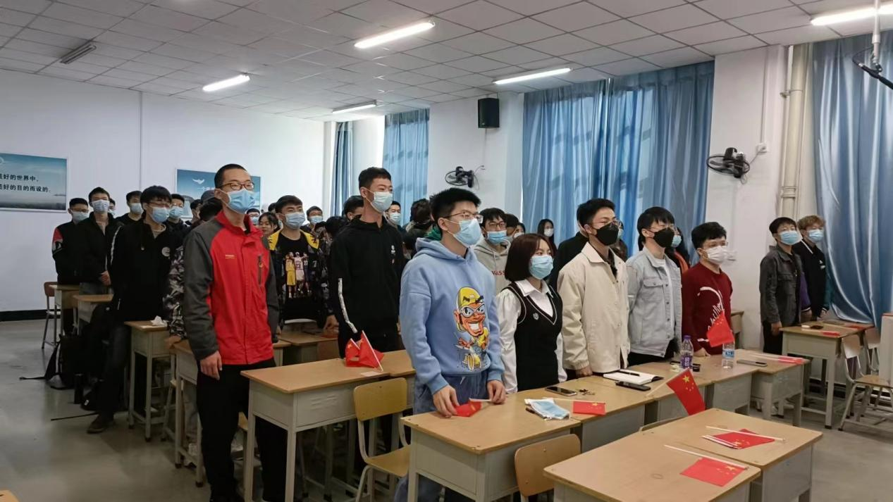在李克强总理宣布党的二十大开幕后,yl6809永利集团的学子们跟随会议流程,全体起立合唱国歌,并向老一辈已故无产阶级革命家和革命先烈默哀。