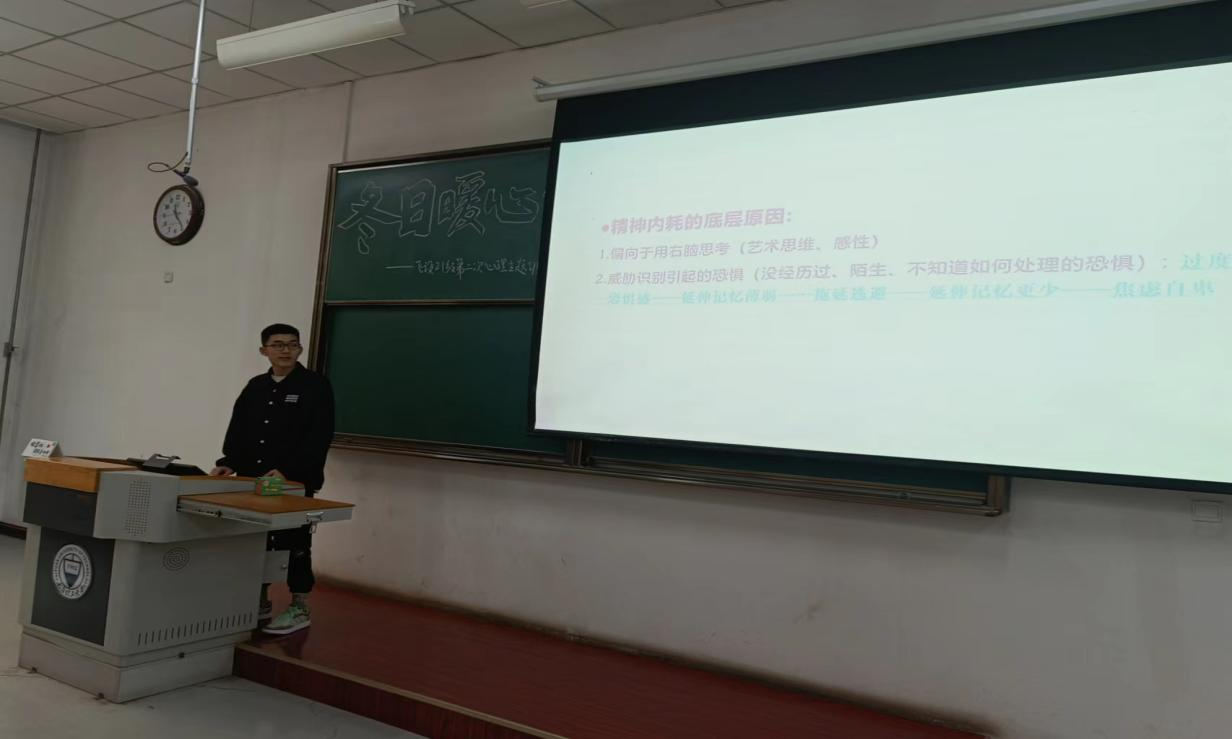 健康的心理是一个人全面发展必须具备的条件和基础。为全面贯彻党的教育方针,更好地促进大学生科学文化素养和身心健康素质协调发展,营造人人了解心理健康、人人关注心理健康的氛围,yl6809永利集团于11月21-22日在20级和21级本科生中同步开展“冬日暖心”心理健康主题教育活动。活动围绕“摆脱精神内耗、充实健康心灵”这两个主题展开。