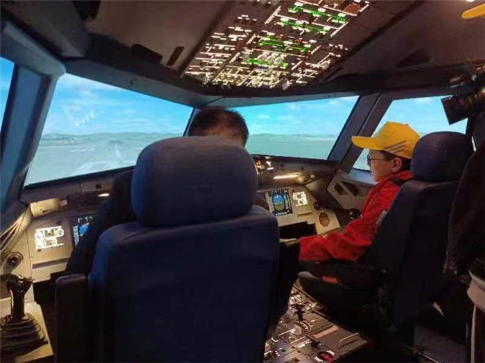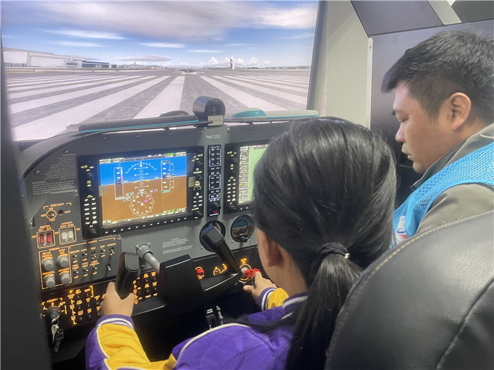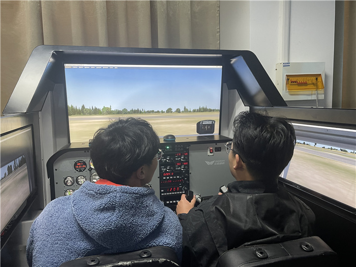 活动的最后,学院组织大家参观了形式多样的飞行器,从塞斯纳-172到空客A320机型,还进行模拟飞行体验。在专业教师指导下,大家认真学习飞行基本要领,了解飞机仪表操作系统。在实际体验时,大家身临其境,沉浸感愈发强烈,仿佛翱翔于蓝天白云之间,深切感受到航天科技发展的魅力。