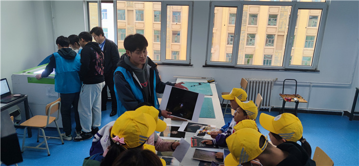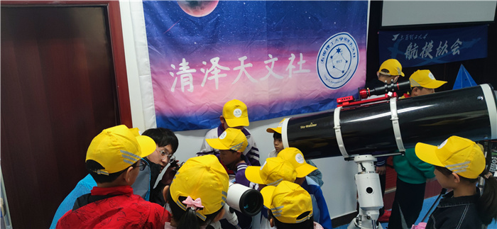 在动手实践环节,学院的科普志愿者向同学们介绍了多旋翼无人机、航空模型、天文望远镜、星空摄影等大学生创新创业活动成果,指导同学们体验并制作完成了自己的航空小模型等工艺品。