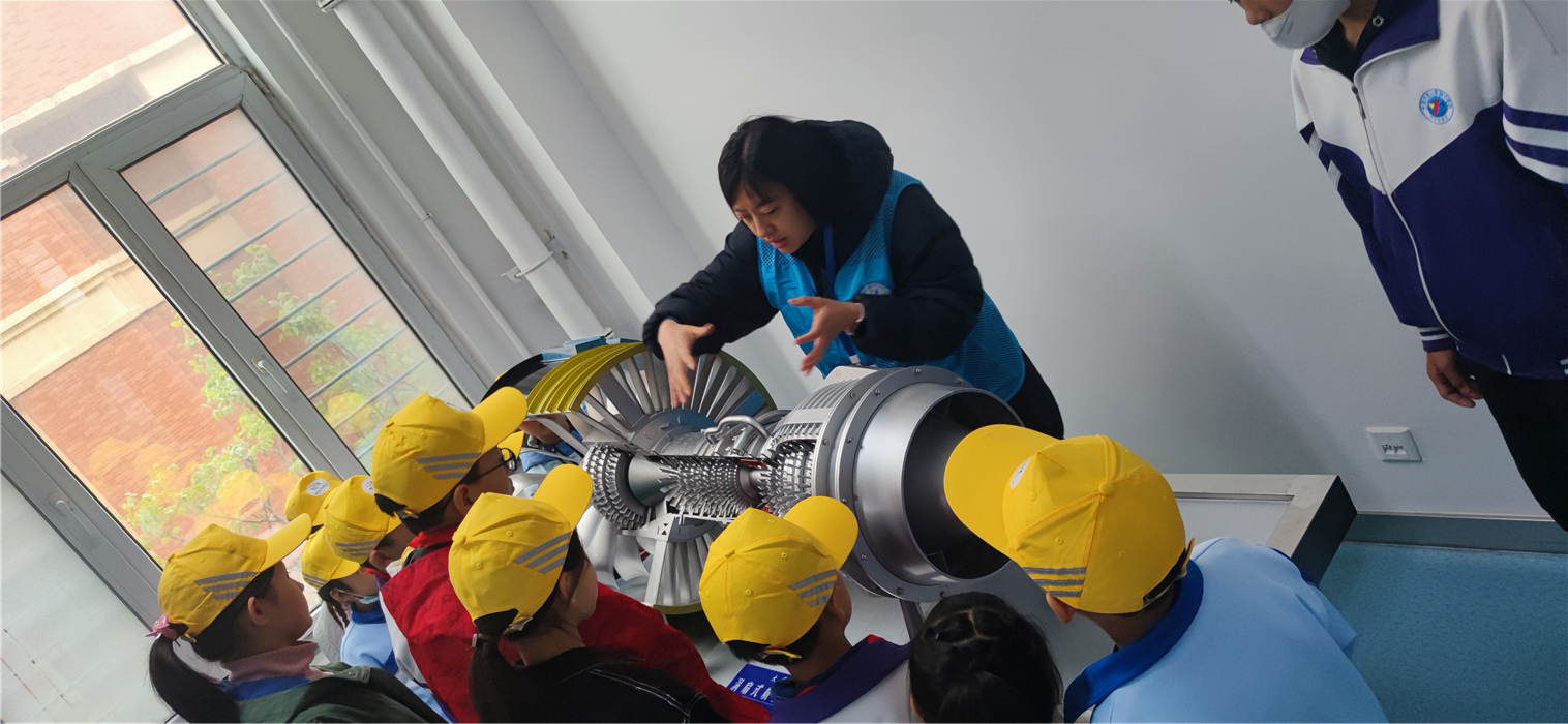为了让同学们直观了解“工业皇冠上的明珠”——航空发动机是如何设计制造出来的,指导老师带领同学们参观了空气动力学实验室和航空动力实训室,给同学们认真讲解了风洞教学系统、航空发动机模型、微型涡喷发动机真机件的相关知识,使同学们初步了解了飞机动力系统的奥秘以及航空发动机的发展历程。