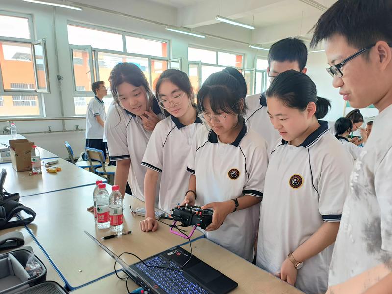 “长风破浪会有时,直挂云帆济沧海”。飞行之路本就坎坷,但赤子之心终将启航!航模制作完成后即进入试飞阶段。试飞前,实践队员指导同学们在模拟器上练习基本操作要领,掌握基本飞行技巧。试飞当天,同学们怀着无比激动的心情,期待着亲手完成的航模直冲云霄,飞上蓝天。在实践队员们耐心指导下,一架架航模自操场草坪上依次飞上空中,虽然飞机的飞行姿态“各显神通”,但看着同学们兴奋激动的表情和跳跃欢呼,实践队员们体会更深的则是知识的力量、付出的回报和对空天梦想的执着。