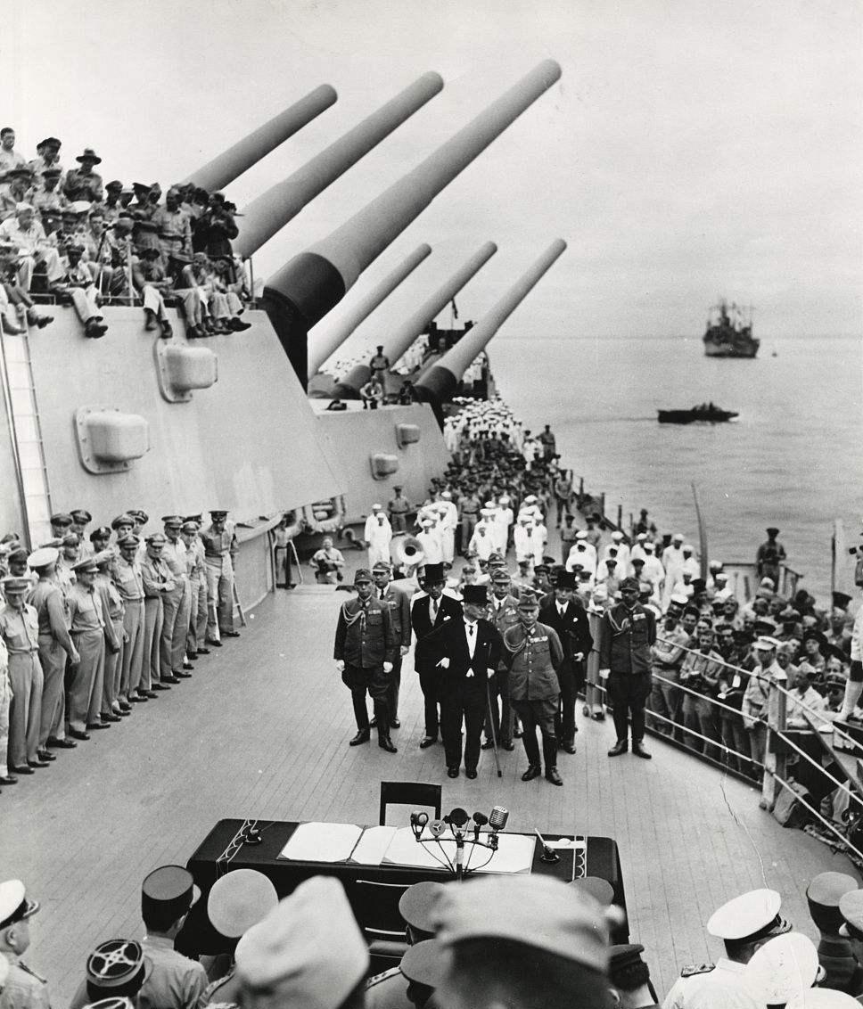1945年9月2日,日本投降仪式在东京湾密苏里号战列舰上举行。高高扬起的舰炮,宣示着世界反法西斯战争亚洲战场的胜利。在这场旷日持久的反法西斯战争中,中国人民前赴后继、英勇抗战,中国军民共伤亡3500万人,直接经济损失达1000多亿美元。中国人民抗日战争的胜利,成为中华民族由衰败走向振兴的重大转折点,为实现民族独立和人民解放、建立新中国奠定了重要基础。