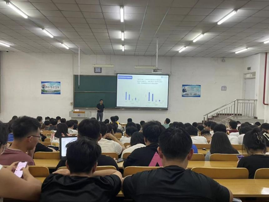 李伟首先介绍了我院近三年毕业生的考研升学、就业及毕业后的发展情况他指出,就业时民生之本,是每个学生求学的根本,也是实现自我价值的必经之路,他强调,一要科学规划学业生涯和职业生涯,切合自身实际,将个人理想融入国家发展大环境;二要制定合理的实施计划,朝着目标脚踏实地去落实;三要提升自知、自律、自觉意识,适当给自己加压,有条不紊地推进计划。针对2025届毕业生他强调,除了学校提供的各类就业信息外,同学们也要积极拓宽获取就业信息的渠道,及时掌握各大企业的暑期实习、见习信息、招聘信息,在考研和就业之间做出理性的选择,寻求适合自己的职业发展道路。他为同学们分享了就业和升学的典型案例经验,介绍了未就业学生面临困难和学院的后续推进措施。同时,他还鼓励低年级学生努力学习专业知识和技能,不断提升自身的综合素质,为未来的就业选择提供更多的支撑和保障。