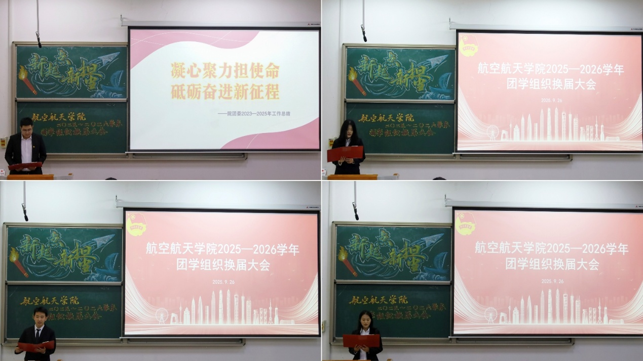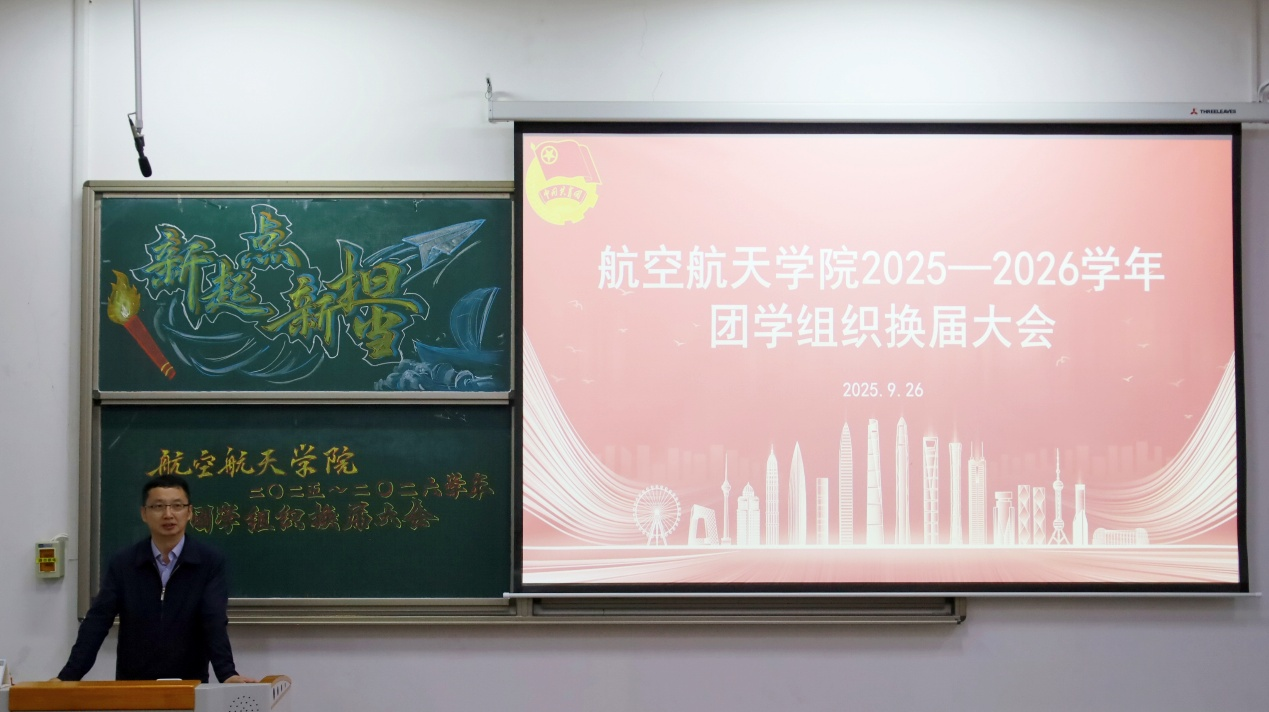 闫晓峰进行总结讲话,高度肯定了上一届团学干部的辛勤付出和扎实工作,并对新一届团学成员寄予殷切希望,勉励大家要在实践中练就过硬本领,以实干将团学工作与学院航空航天特色深度融合。他强调,同学们正处在强国伟业加速推进的关键时期,既是伟大时代的见证者,更应是民族复兴的参与者、建设者。同学们要坚定接过历史的“接力棒”,将这段工作经历转化为成长路上的精神养分与能力储备,把个人的成长与国家的需求紧密结合,把青春的理想融入航空航天事业的发展蓝图,在强国征程中书写无悔青春的壮丽篇章。